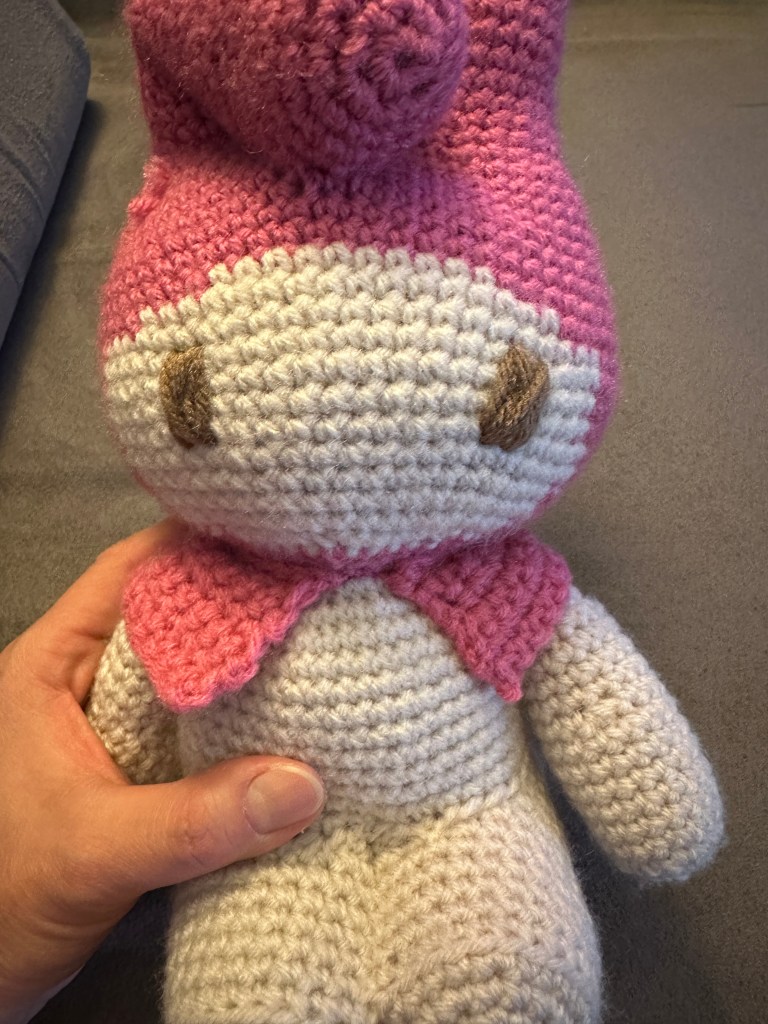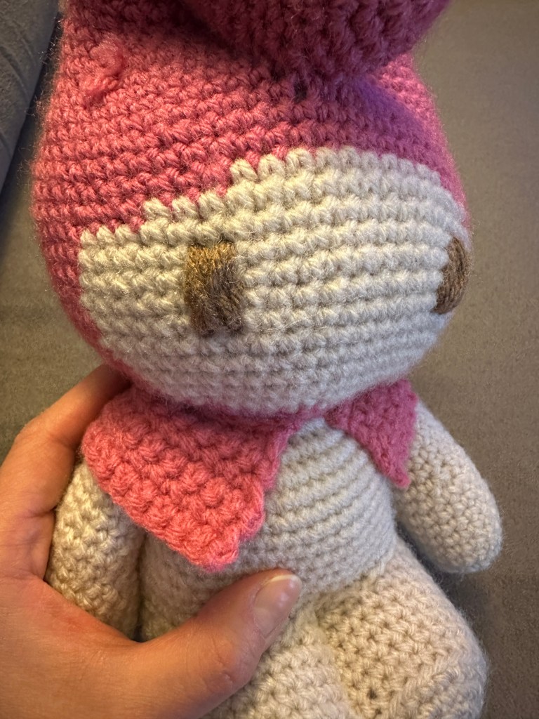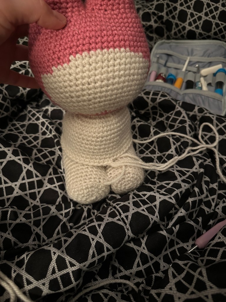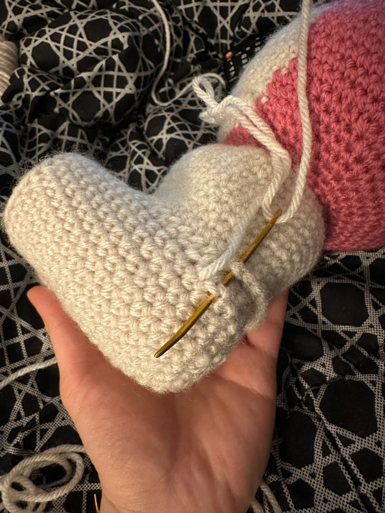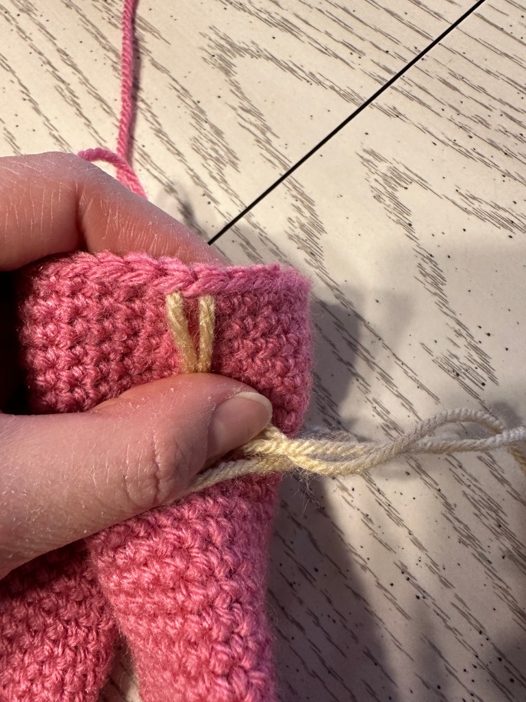 At this point you can either attach the body now or later. I attached it now because it means less ends to weave in.