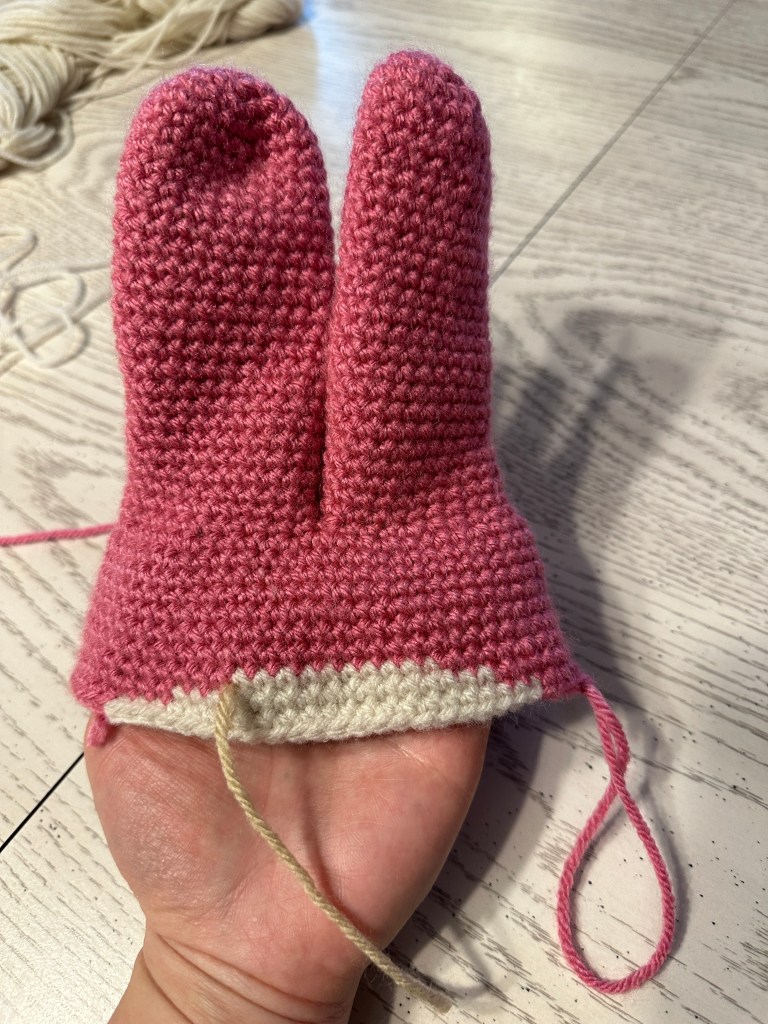Rnd 1. This is the round where you connect all the fingers. (24)